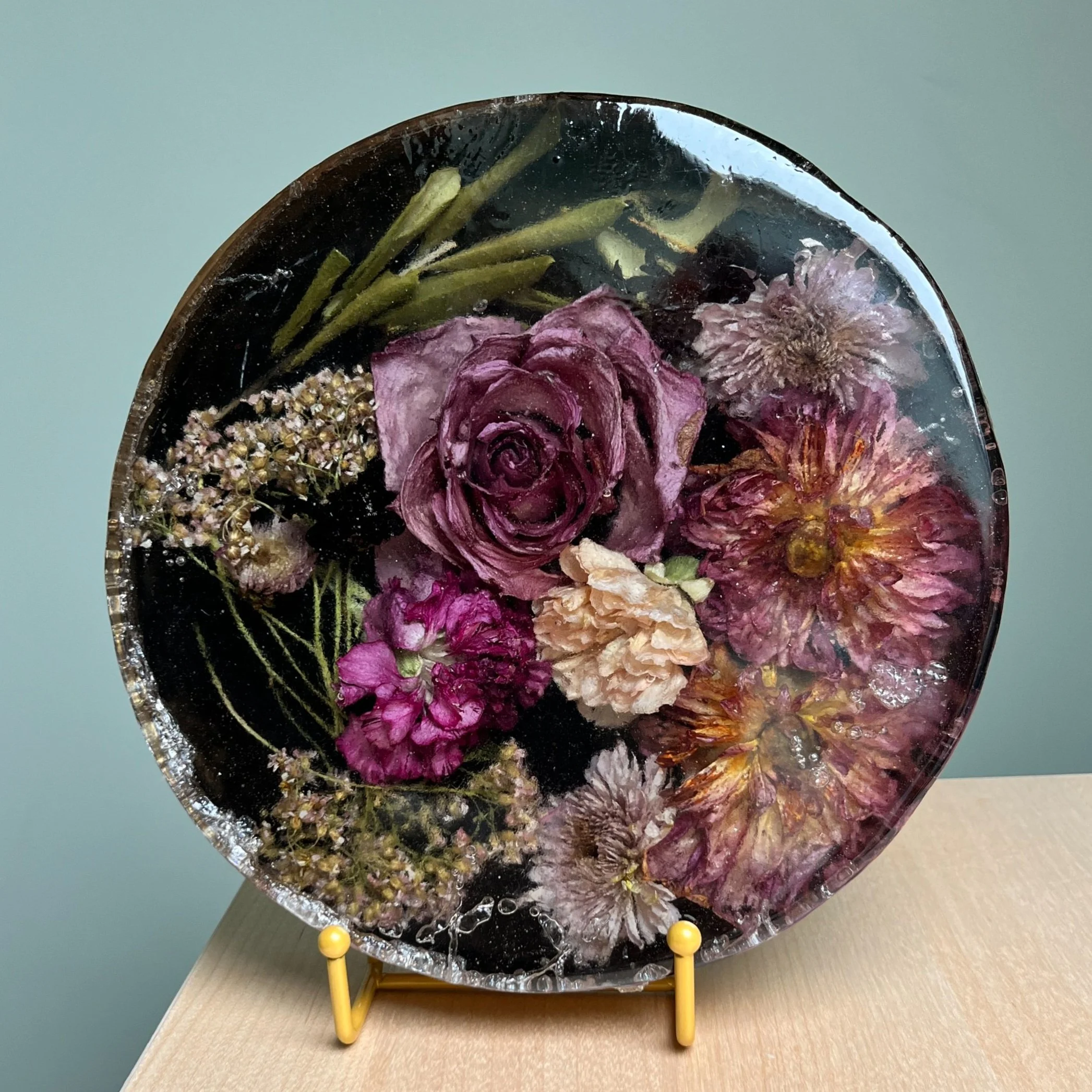 This is my practice of drying & preserving flowers in epoxy resin and creating pieces of botanical art.